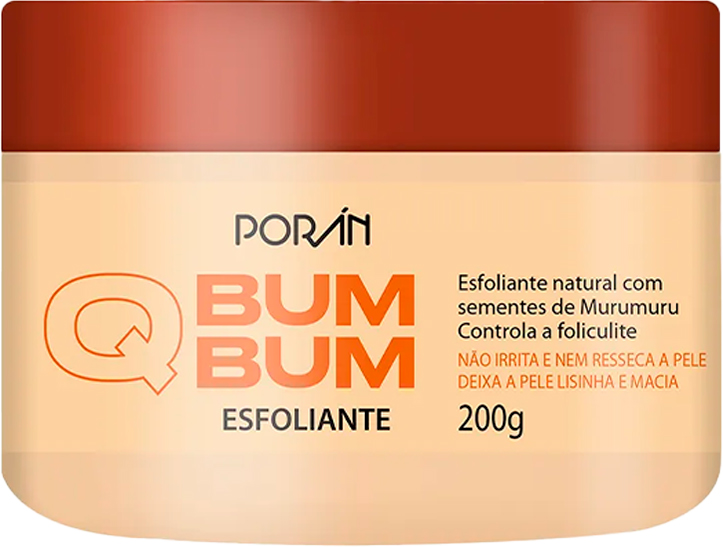 O Esfoliante Q Bumbum da Poran é um tratamento corporal ideal para promover uma esfoliação profunda, removendo células mortas e deixando a pele mais suave, tonificada e iluminada. Formulado com ativos poderosos que ajudam a suavizar e revitalizar a pele, ele possui partículas esfoliantes de origem natural que garantem uma esfoliação eficiente, mas delicada. Além disso, a fórmula contém ingredientes que auxiliam na tonificação e hidratação da pele, proporcionando uma textura mais firme e sedosa, especialmente na região do bumbum e coxas. Com um aroma agradável, o esfoliante transforma a rotina de cuidados em um momento de prazer e bem-estar.